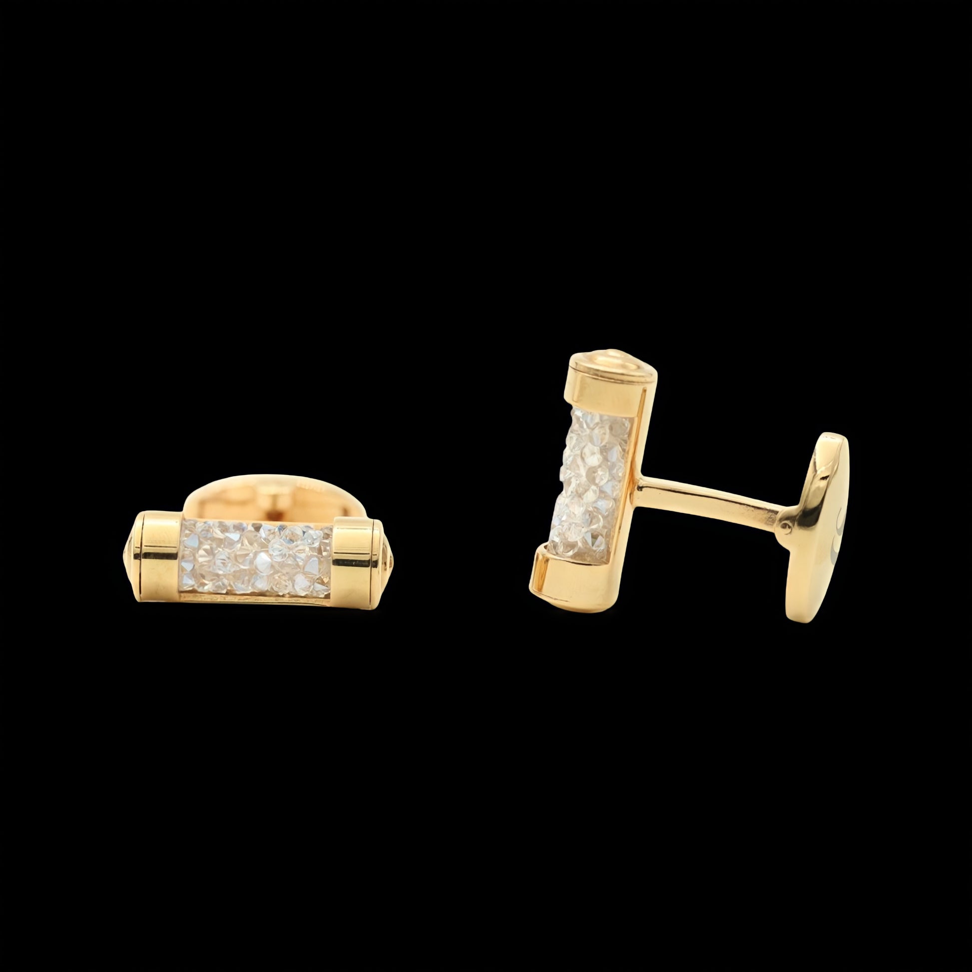 Inlaid with the quality Swarovski crystals and made of 14K yellow gold-plated brass, these cufflinks speak style.