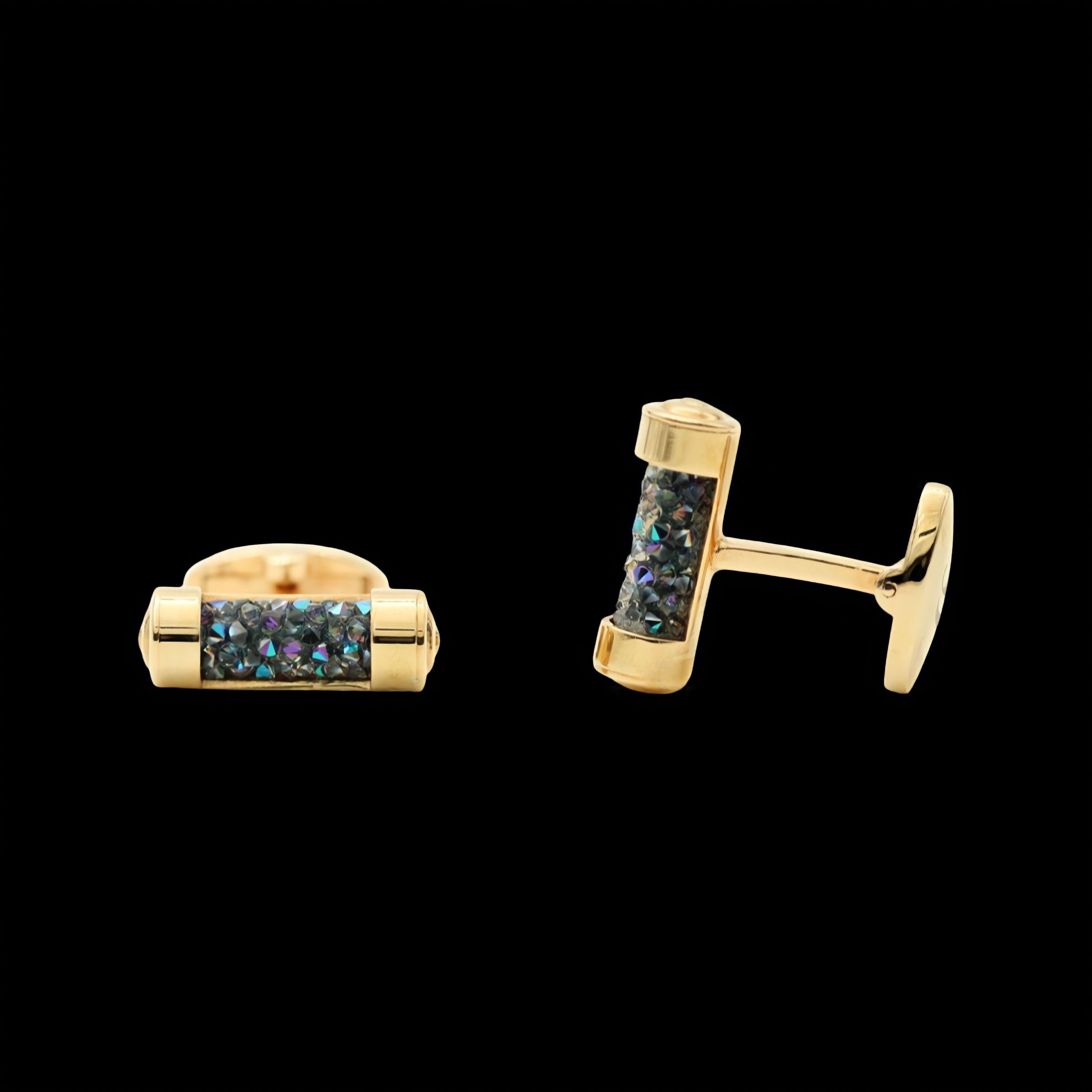 Inlaid with the quality Swarovski crystals and made of 14K yellow gold-plated brass, these cufflinks speak style.