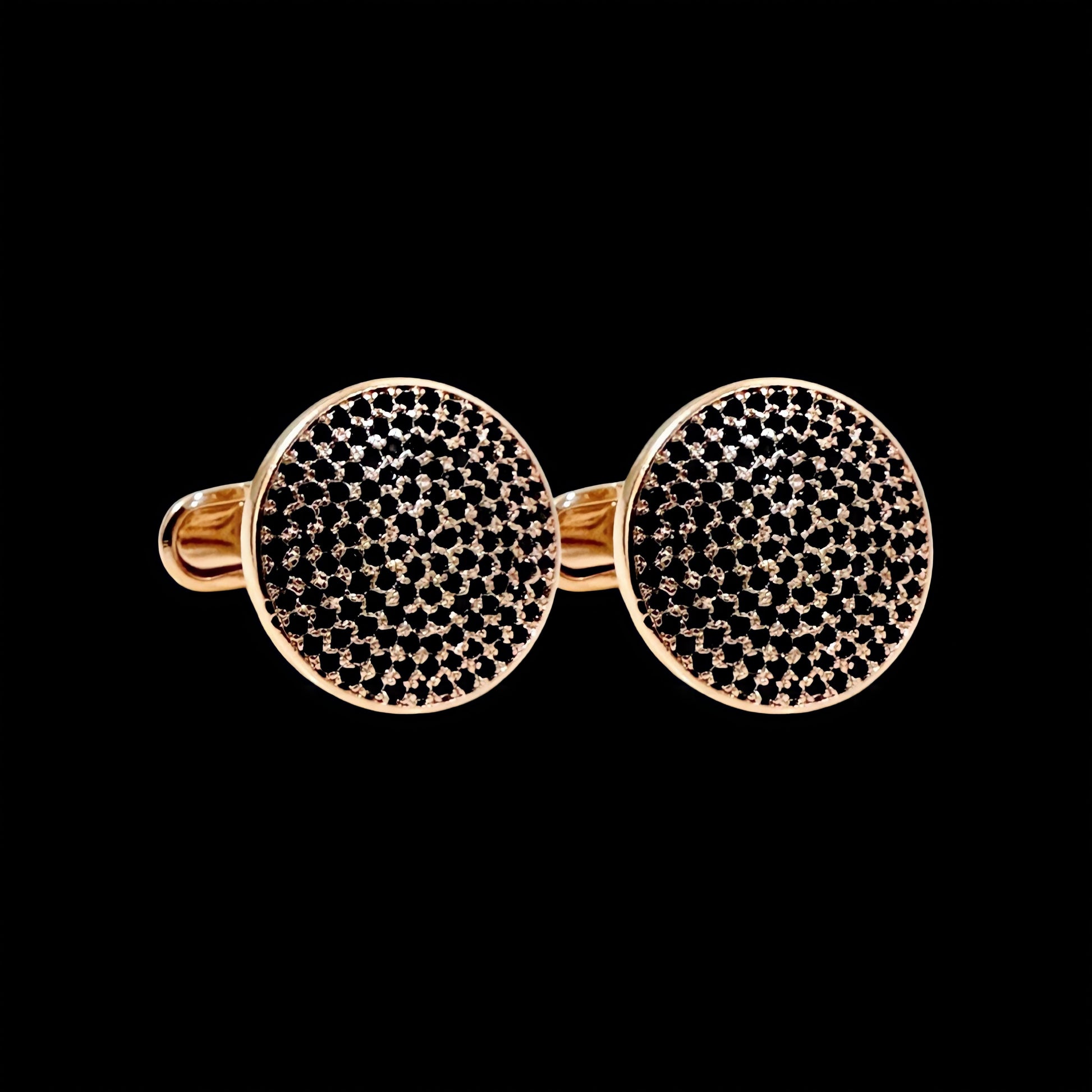 Meticulously crafted, these black cubic zirconia (CZ) crystals inlaid in 14k rose gold-plated brass offer a sleek and sophisticated finish to any formal occasion. The luxurious round frame is ideal for an elevated and stylish look.